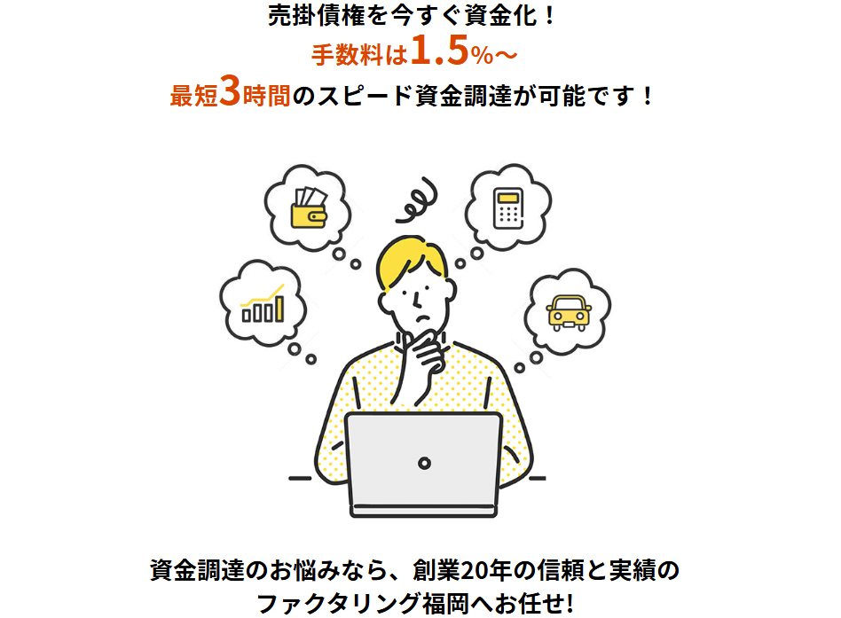 近年は福岡にいながら全国対応のファクタリング会社と契約し、来店不要で資金調達を完了できるケースも増えています。