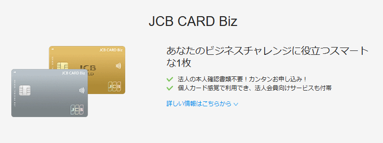 具体的には「JCB CARD Biz」や「JCB Biz ONE」、「JCB法人カード」のいずれも、個人事業主やフリーランスなど開業間もない事業者を対象としています。