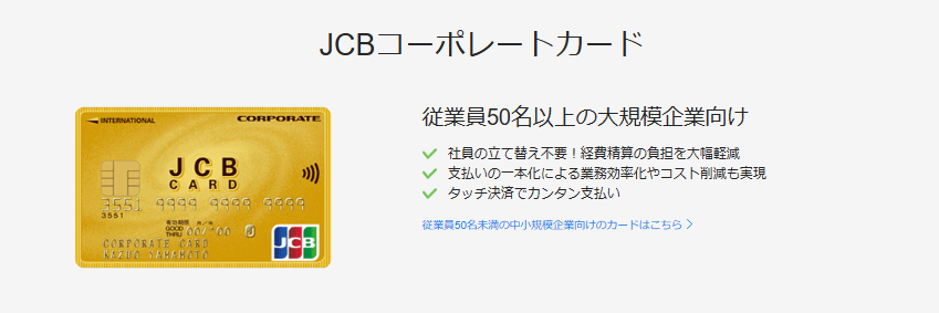 出典:法人カード・ビジネスカードなら、JCBカード|法人のお客様