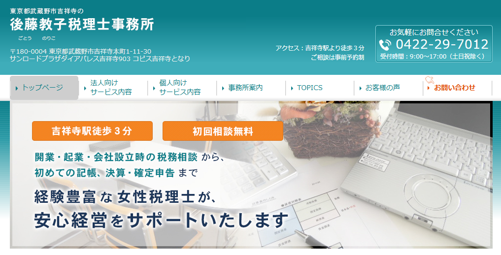 武蔵野市で安いおすすめの税理士事務所③:後藤教子税理士事務所